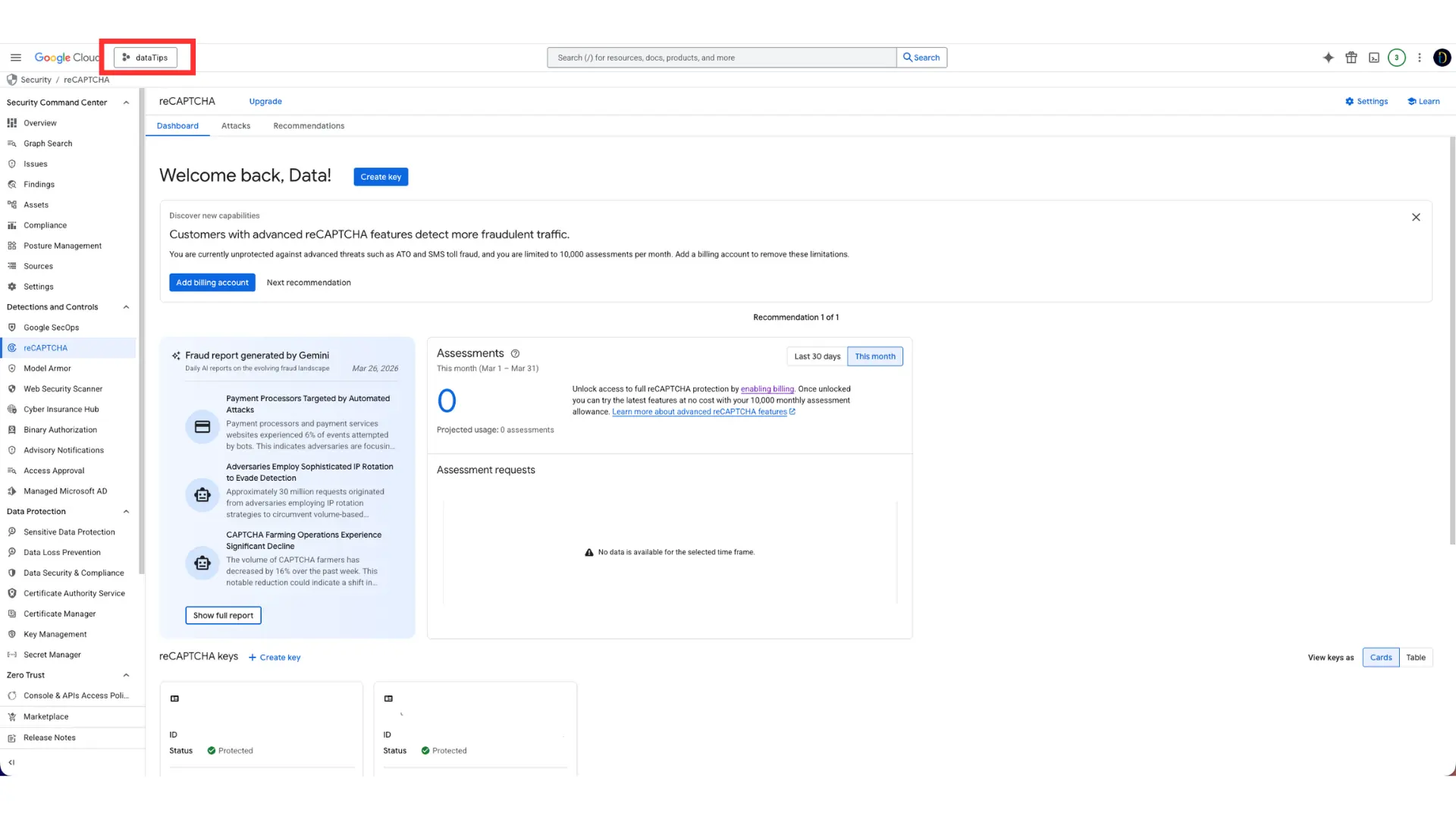Y si quieres que el proceso continúe de forma correcta en la etapa siguiente, es decir, en la integración real de reCAPTCHA dentro de tu sitio web, en Data Tips podemos ayudarte. Así te aseguras de que no solo quede creada la cuenta, sino también bien implementada dentro de tu ecosistema digital.