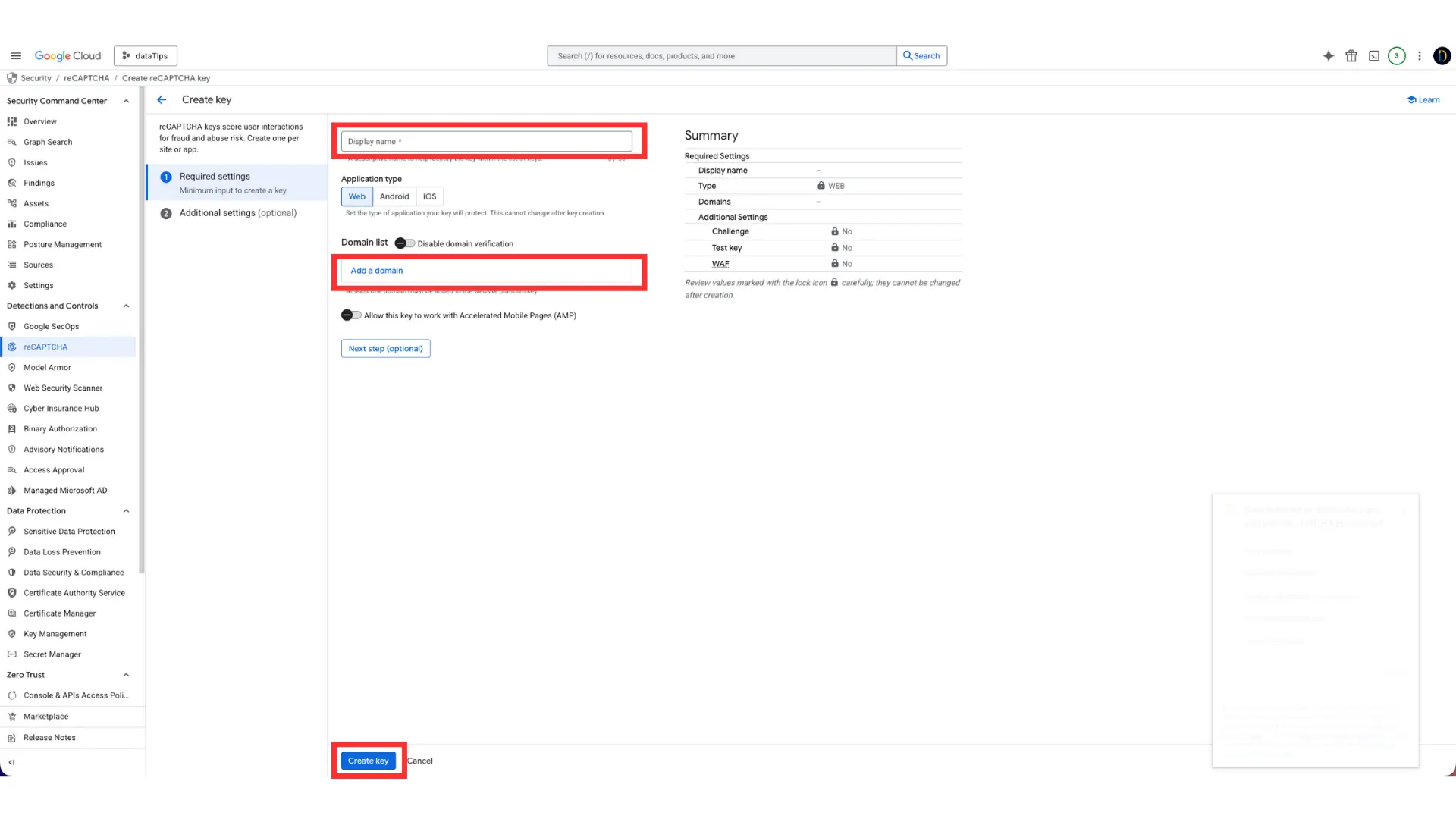 Paso 8. Crear la llave de reCAPTCHA
