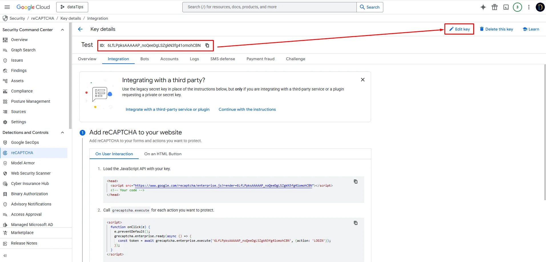 En este punto, es muy común que necesites dos datos específicos para la integración en tu sitio web: el ID de la llave y la Secret Key (clave secreta). Aquí te mostramos cómo encontrarlos rápidamente: